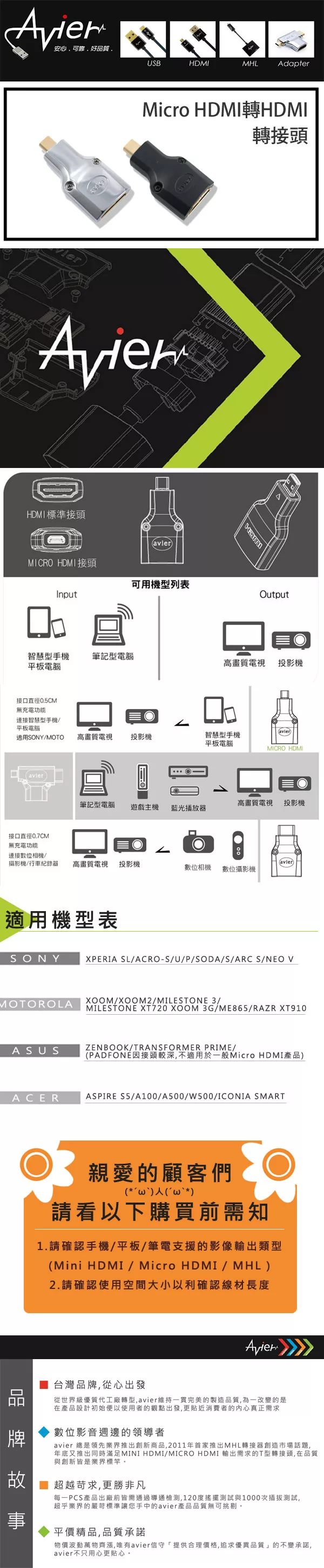 【avier】Micro HDMI 轉 HDMI 轉接頭(MicroD公-A母)銀色 ptt使用評比